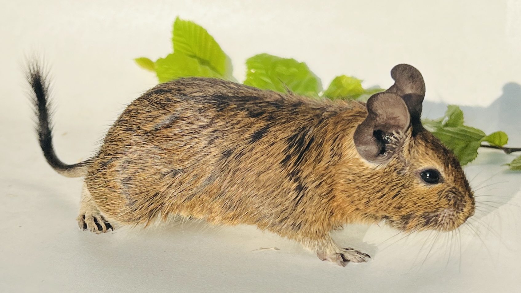 Degus are active and intelligent animals that require plenty of stimulation to stay healthy. In captivity, they need a spacious environment with multiple levels, hiding places, sand for bathing, and a constant supply of branches to gnaw on. Exploring new objects, and sharing playtime with cage mates all keep their minds busy. Without sufficient space or enrichment, they can become bored and develop stereotypical behaviours, so variety is key to their wellbeing.